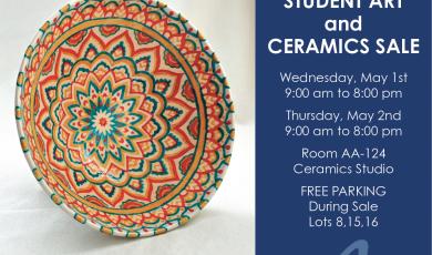 The MC Student Art and Ceramics Sale is the perfect place to find one-of-a-kind gifts for Mom, Dad, & Grad! Wed, May 1st 9:00am - 8:00pm & Thurs, May 2nd 9:00am - 8:00pm Room AA-124 Ceramics Studio FREE PARKING During Sale Lots 8,15,16